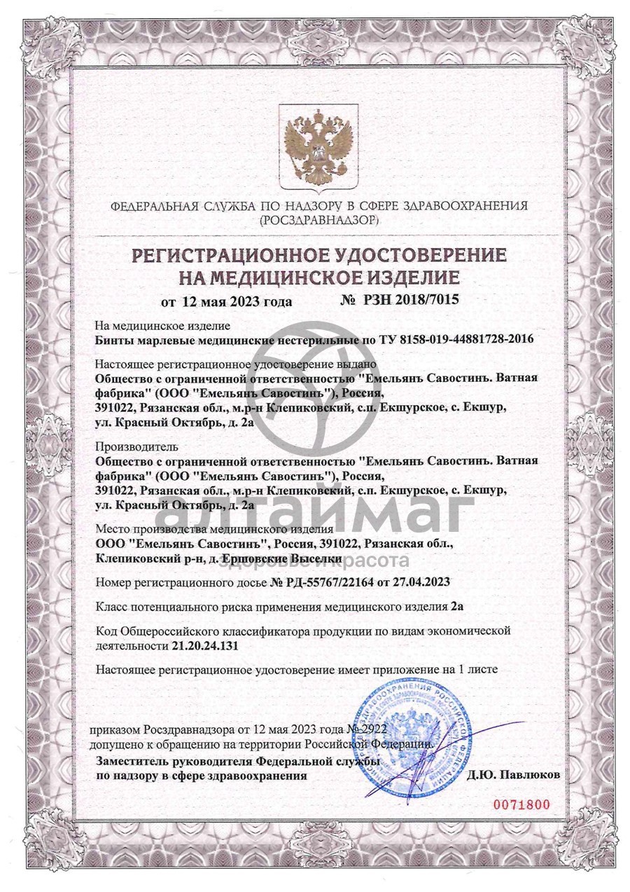 - Купите Бинт марлевый Емельянъ Савостинъ нестерильный 7x14см в Нальчике по доступной цене 45 ₽ с доставкой на дом или заберите Ваш заказ в Нальчике из ближайшего пункта выдачи, сделав заказ на AltaiMag.ru.
