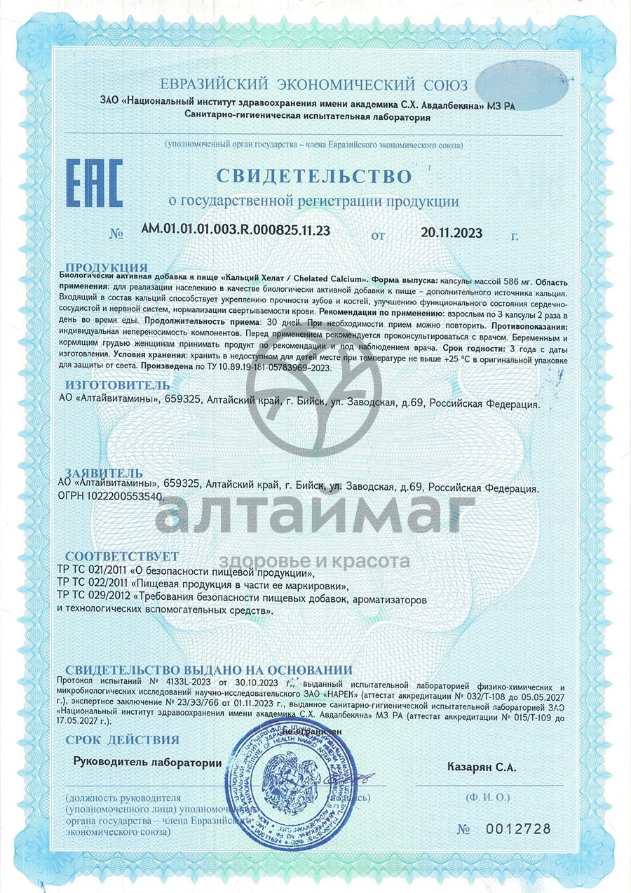 Есть вопросы по товару "Кальций Хелат Алтайвитамины 60 капсул"?