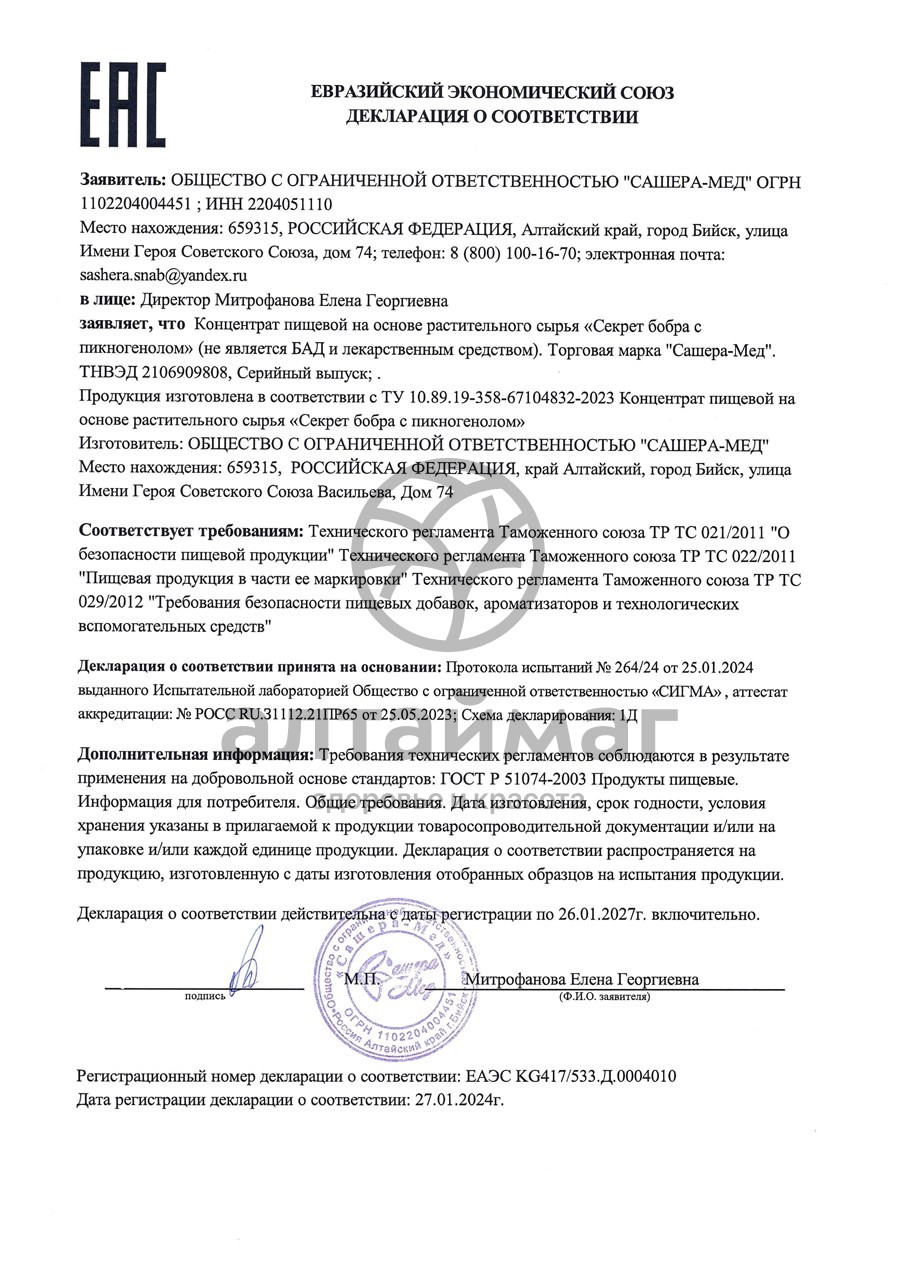 Есть вопросы по товару "Секрет Бобра с пикногенолом Сашера-Мед 60 таблеток"?